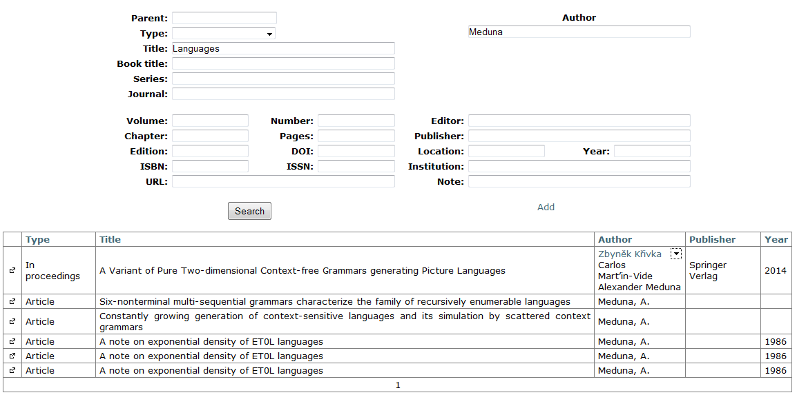 XML database of publications including comments and attached files with customized visibility to public. Allows to import (from CSV, XLS), search, add using BibTeX records and export BibTeX record.