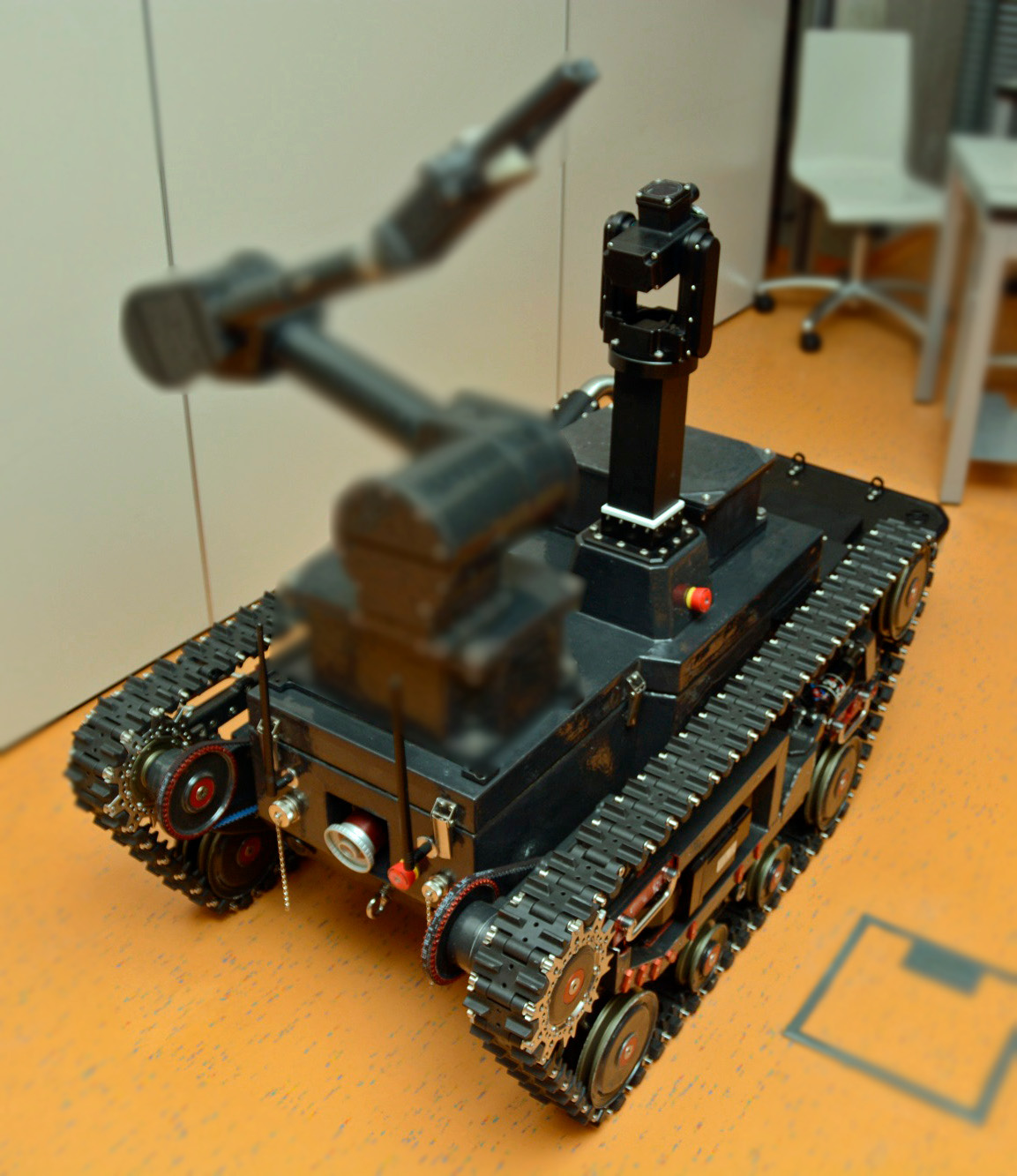 Jedná se o funkční vzorek podvozku robotické platformy projektu "Robot pro hledání osob v závalech a lavinách", MVČR VG20102014024.