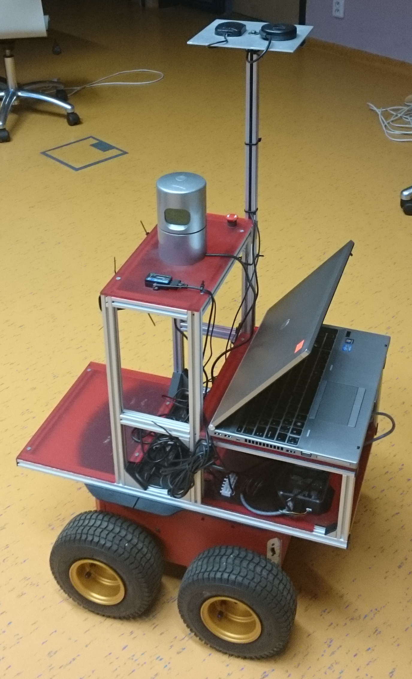 The device is a functional sample of robotic platform. It is fitted with sensors for capturing data for further analysis and evaluation of 3D mapping and reconstruction algorithms. The robot built on top of Pioneer 3-AT base is usable in both indoor and outdoor conditions which for instance makes it suitable as a testing platform for autonomous driving based on sensory data processing via computer vision algorithms. The software equipment is based on meta-operating system ROS (Robot Operating System) defining structure of sensor and command messages. Prepared ROS modules provides a lot of functionality for data acquisition and analysis and allows easy portability of developed algorithms to another robotic platform. The robot can be controlled manually as well as autonomously by setting navigation goals in its map of imminent surroundings.