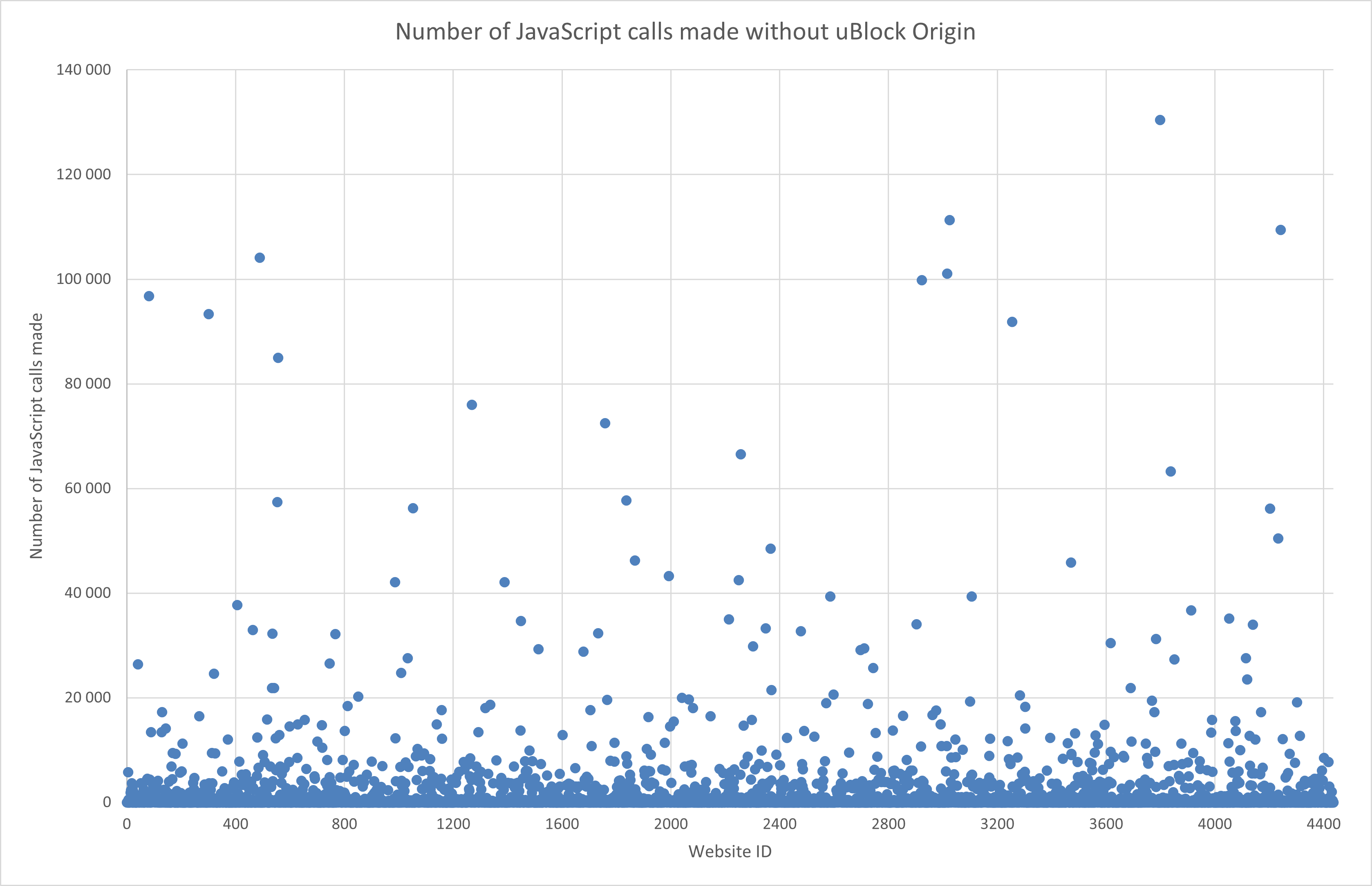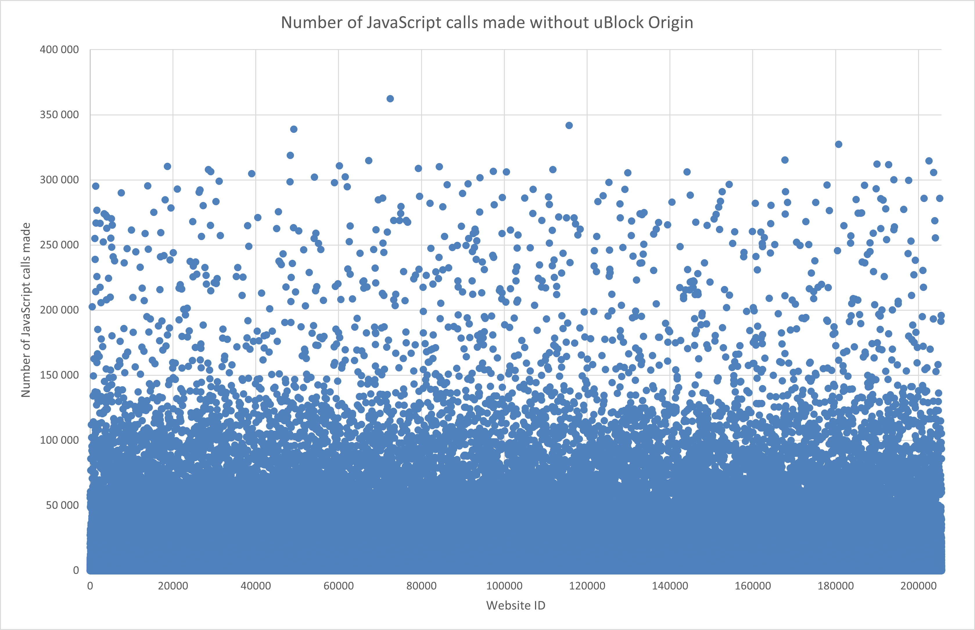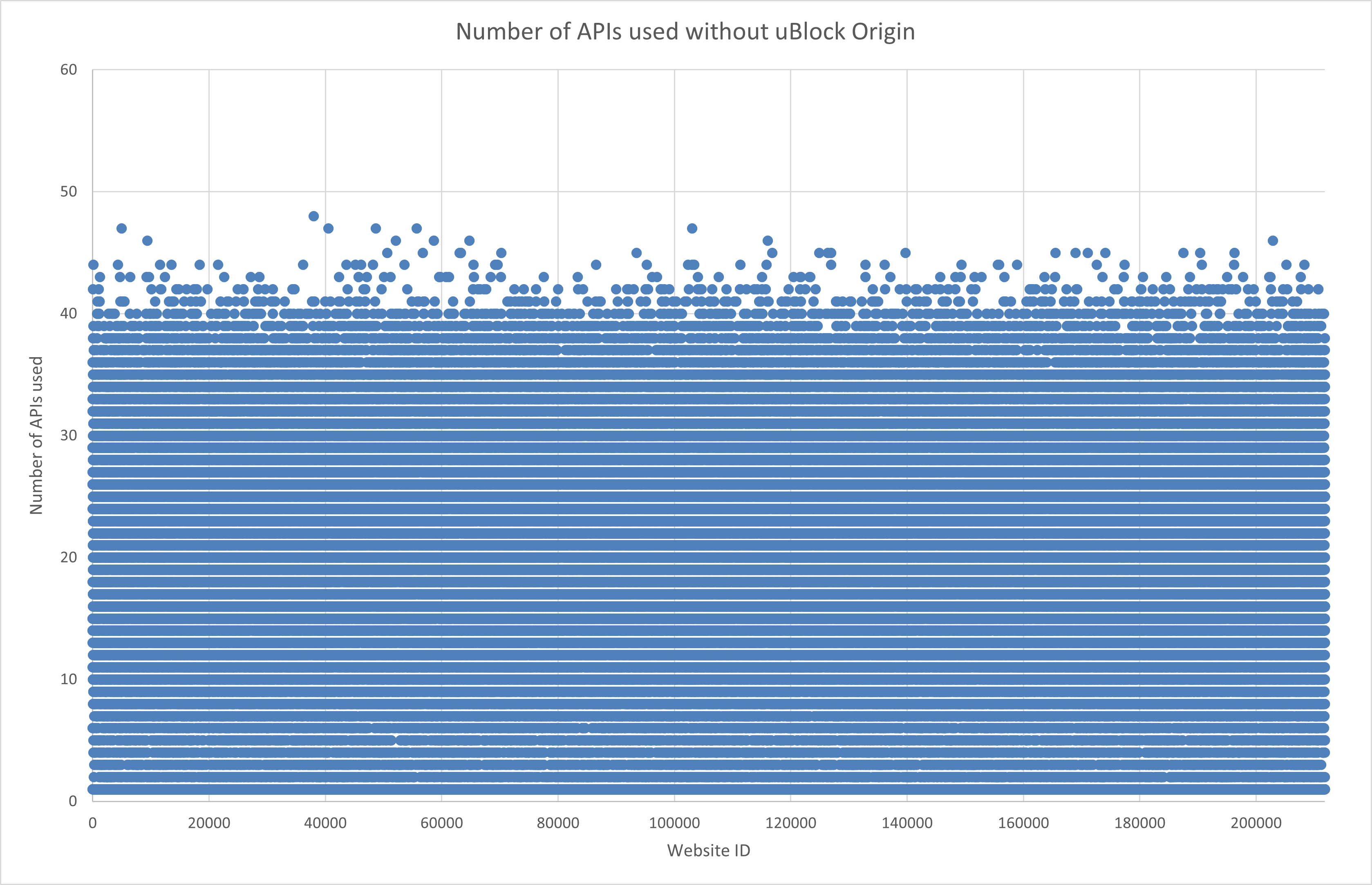 Using the tool, for example, we found that on the 250 thousands most visited websites (according to the Tranco list), with the security extension uBlock Origin, approximately 30% of all JavaScript calls were blocked, when the API Range was suppressed the most. The complete results were published on the FIT cloud.